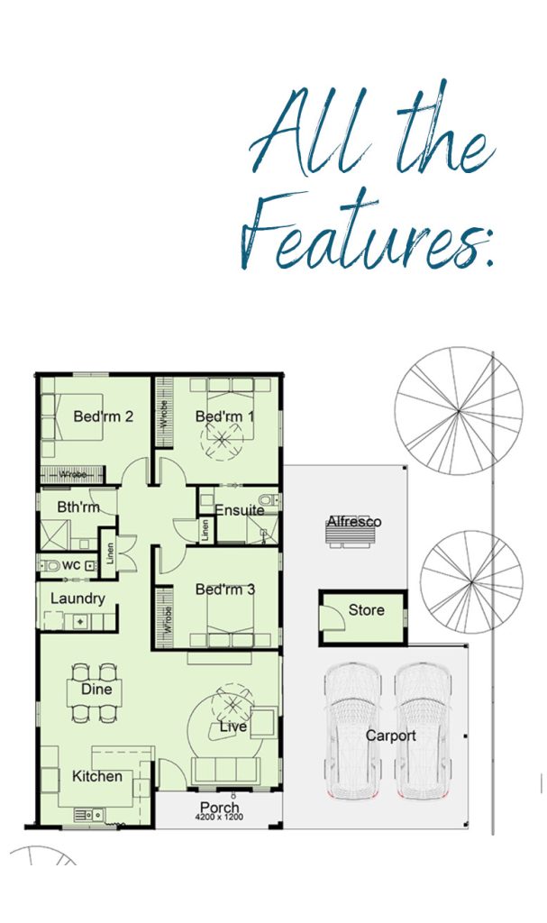 The Swan is a 3 Bedroom / 2 Bathroom Home with a Double Carport, Alfresco area and store room.